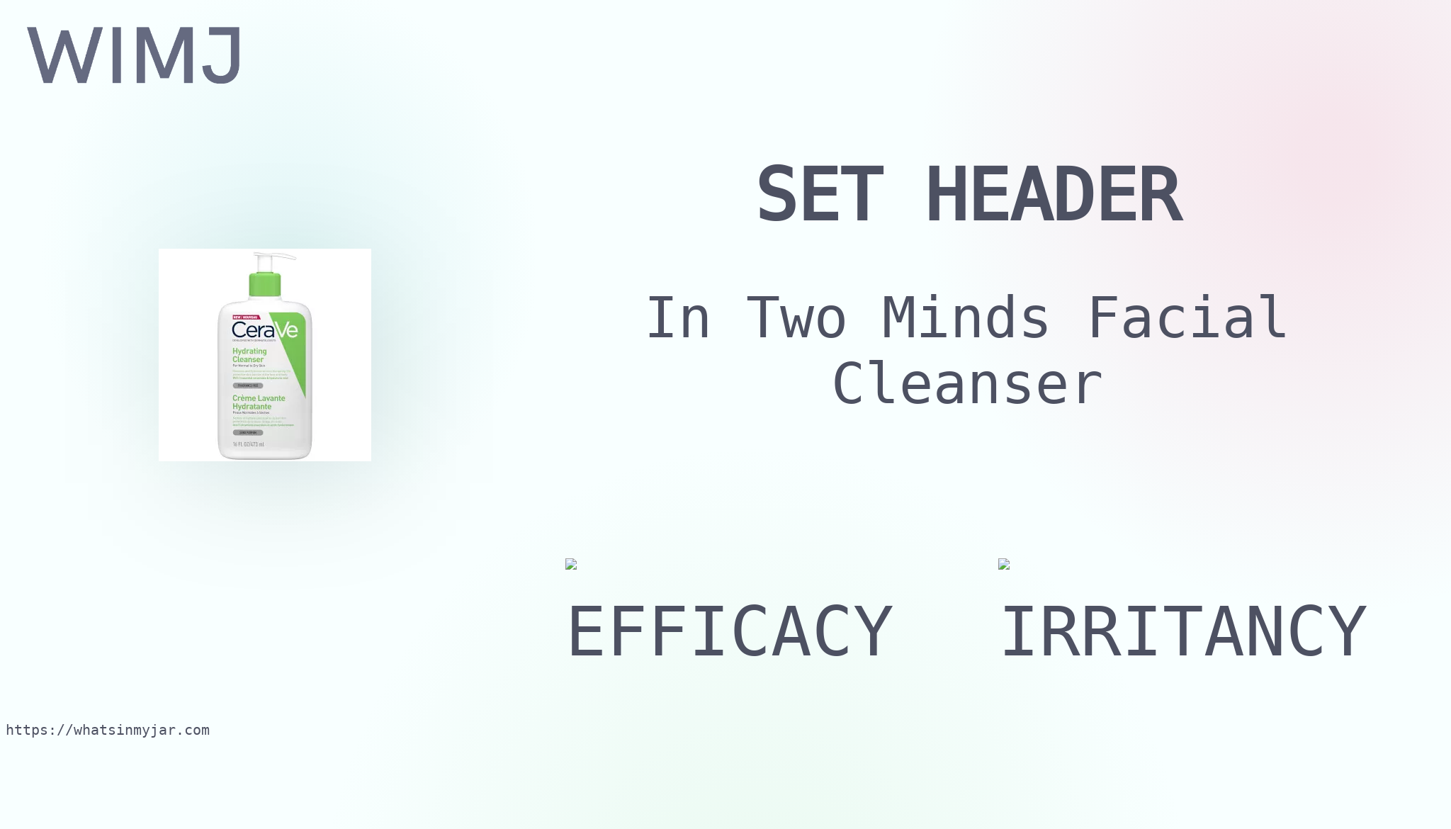 What it does. A gentle facial cleansing gel for combination skin Formulated with Witch Hazel Salicylic Acid Sage Leaf Cleanses thoroughly without drying skin or stripping its natural oils Scented with a refreshing herbal aroma Leaves skin feeling soft purified In Two Minds. Dirt and build-up on skin Decongests pores Skin is left feeling purified soft.